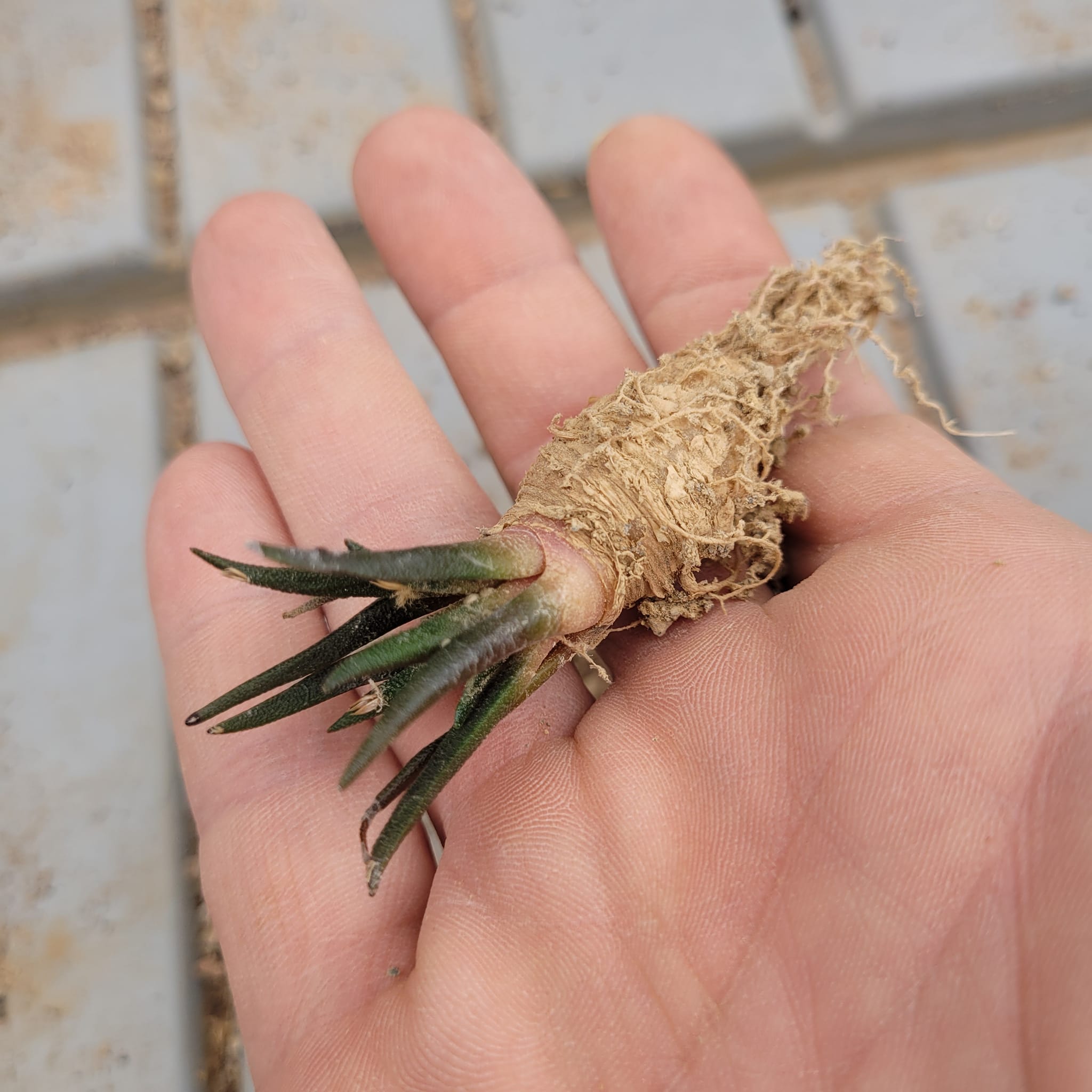 Ariocarpus agavoides seedlings developing their characteristic form. Unlike other Ariocarpus species, the juvenile spines are retained and develop as the plant matures.