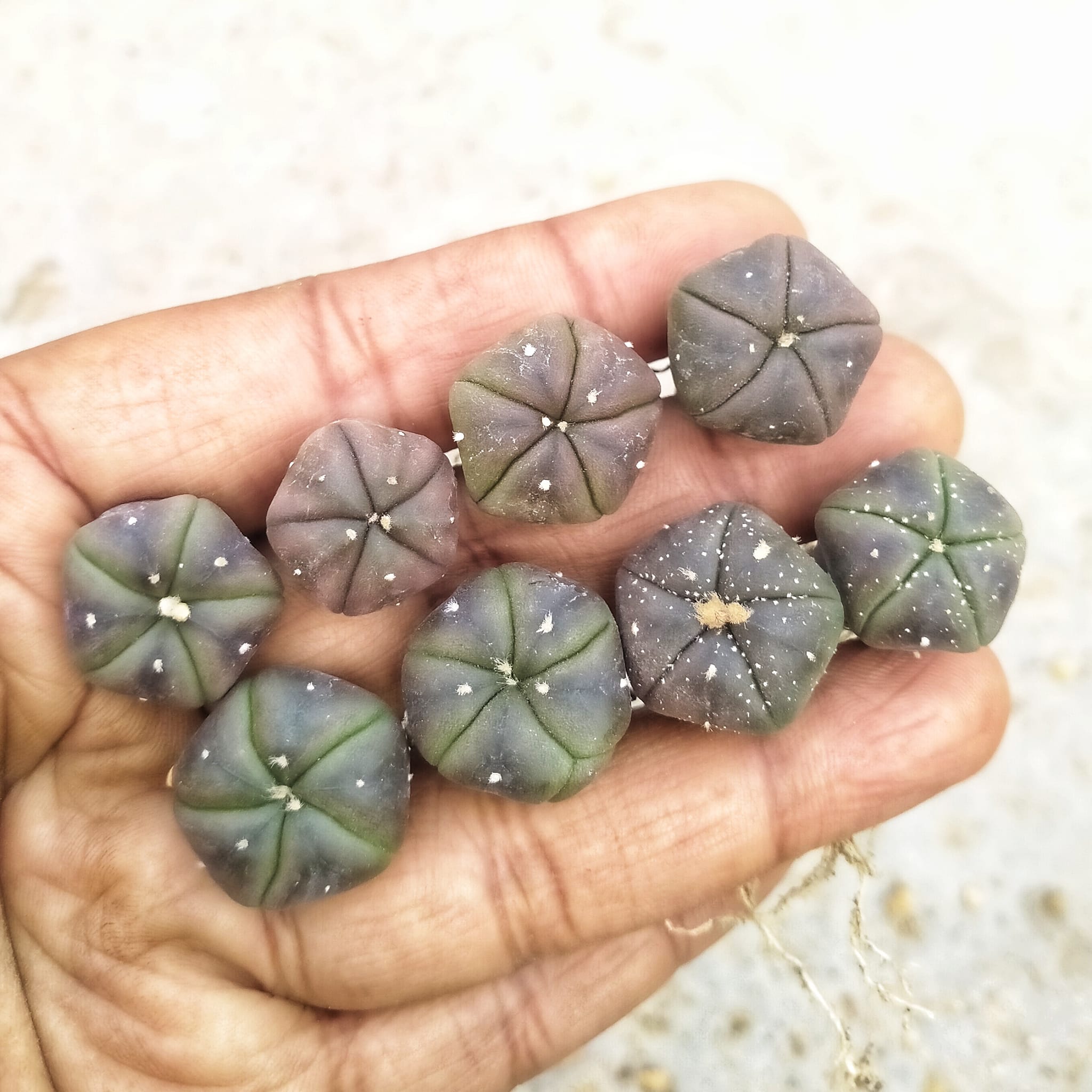 Seeds germinate readily, 2 to 5 days at 25 to 30°C in bright indirect light at high humidity. Fresh seed reaches over 80 per cent germination; year-old seed drops. Seed grown plants typically flower at 4 to 7 years on 5 to 8 cm discs, with some growers reporting buds on well-fed 6 cm plants at 4. Grafted stock onto Hylocereus, Pereskiopsis, or Myrtillocactus flowers at 2 to 3 years but settles into a taller, more domed body than the seed grown norm. Hylocereus stocks are not permanent; the scion usually declines after three years, and degrafting or replacement onto Myrtillocactus is the longer-term path.