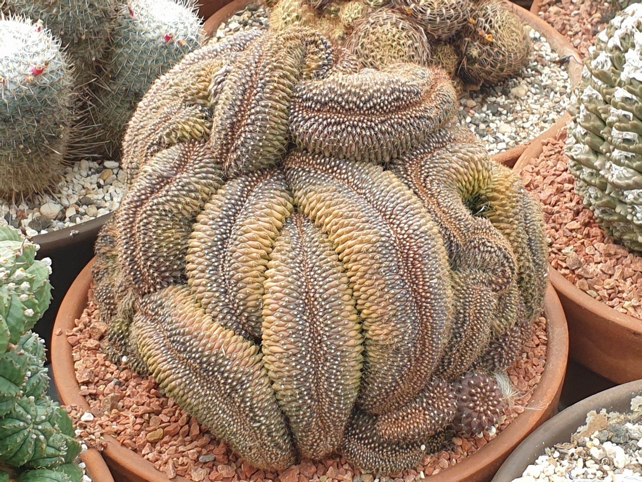 Seed grown is the standard for serious collectors. The tuberous root, the flat disc apex, and the desert coloring of the body are all characters that develop best in seed grown plants on their own roots. Grafted specimens grow faster but tend to produce an unnaturally elongated body that sits above the soil rather than flush with it, losing the defining visual character of the species.
