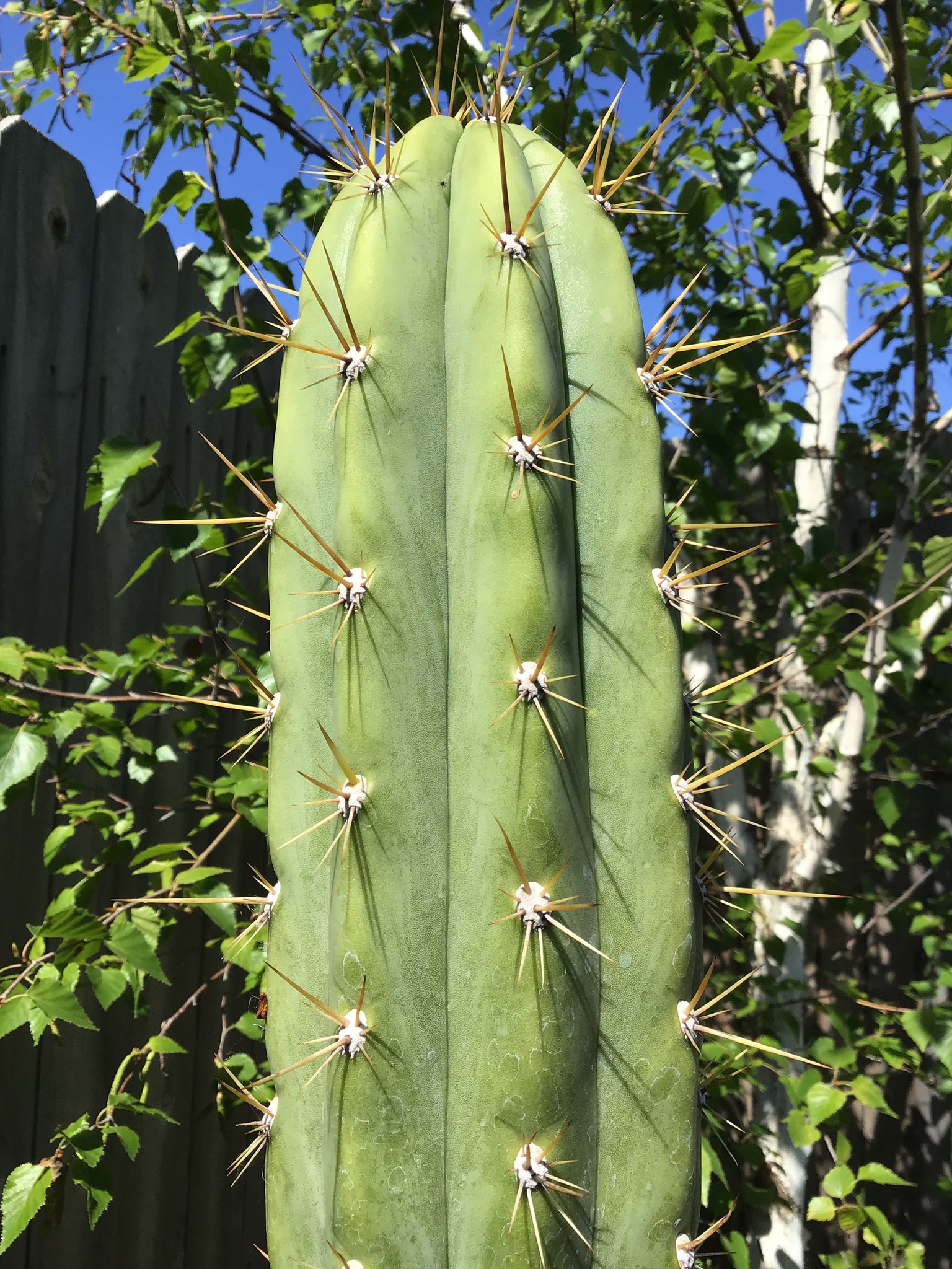 The knobbed spine base is the single most reliable identification character for E. cuzcoensis, and it works against both of its most frequently confused relatives simultaneously. Against E. peruviana, the smooth-based spines of the Peruvian torch separate it from the knobbed-based Cuzco torch at the areole level; the comparison is covered in full detail in the FAQ section below with a character table. Against E. pachanoi, the near-spineless San Pedro, the distinction is even more immediate: a plant with 8–12 long, dark, knobbed spines per areole cannot be confused with a plant carrying 0–7 short, smooth-based, often vestigial spines.