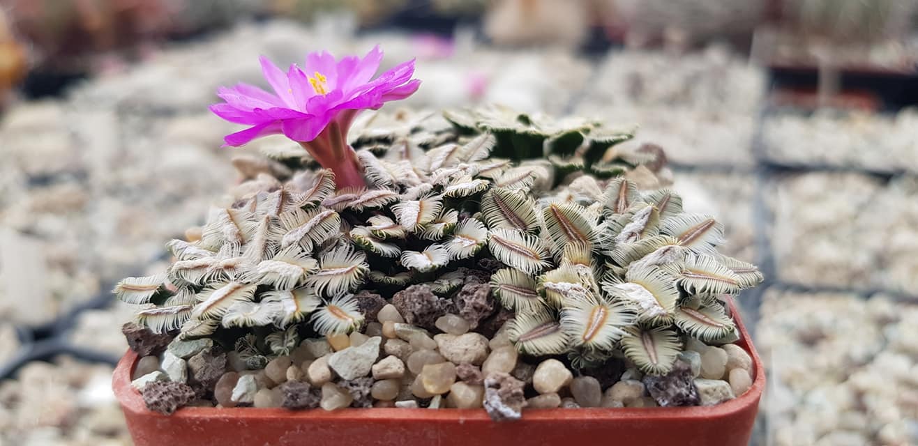 A second confusion is with members of the saboae group further north. Those share the flower structure but live in Sonora, Chihuahua, and Durango, and their populations are not adjacent to the Oaxaca range. A third is with Pelecyphora aselliformis, which matches the elongated pectinate areole but sits in a different tribe and produces a very different flower. The two questions collectors actually raise are the pectinifera comparison and whether the plant at hand is grafted or ungrafted; the FAQ below takes each in turn.